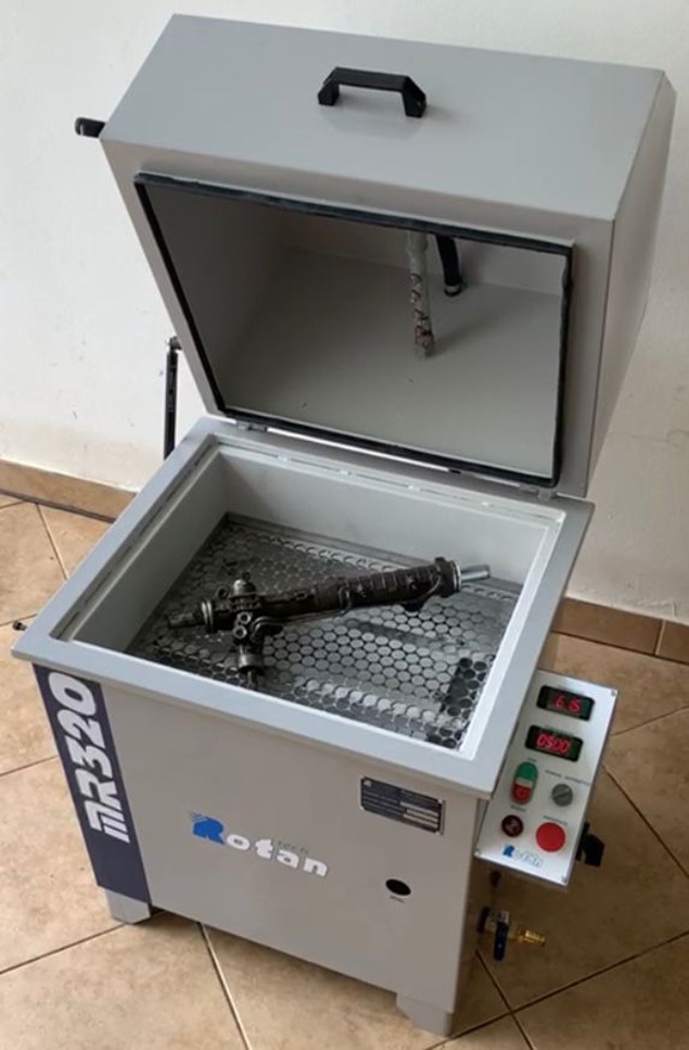 Lavação automática de partes externas de carcaças e peças de direção hidráulica, freios, turbinas, bombas injetoras, injeção diesel, caixa de câmbio, transmissão automática, cabeçotes, motores e peças aplicadas na linha automotiva, mobil e industrial.
